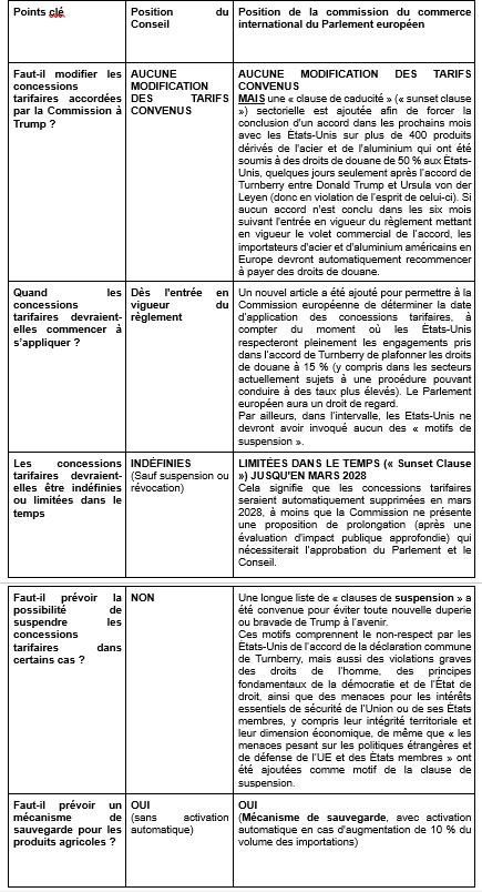 Le 27 juillet 2025, la Présidente de la Commission européenne, Ursula von der Leyen, et le Président Trump avaient convenu d’un vaste accord dit de Turnberry afin de limiter les hausses tarifaires décidées unilatéralement par Donald Trump en avril de la même année. Les textes seront votés en séance plénière.